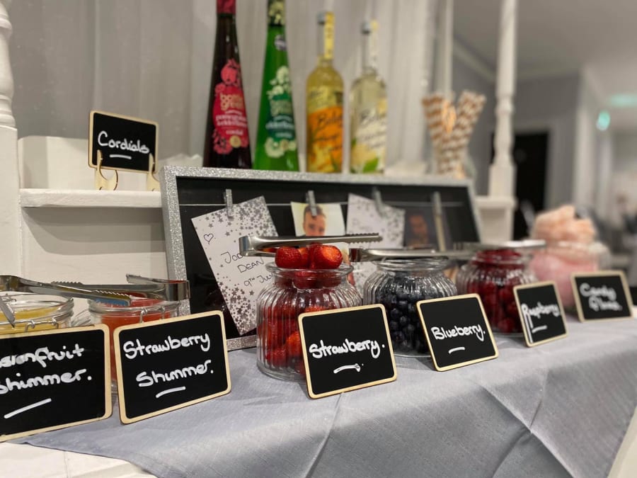 Our Pimp My Prosecco Cart comes complete with a delightful selection of cordials and fresh fruit juices, allowing your guests to create their own personalized prosecco cocktails. Elevate your celebration with a variety of seasonal fruits, adding a burst of vibrant colours and flavours to every glass.