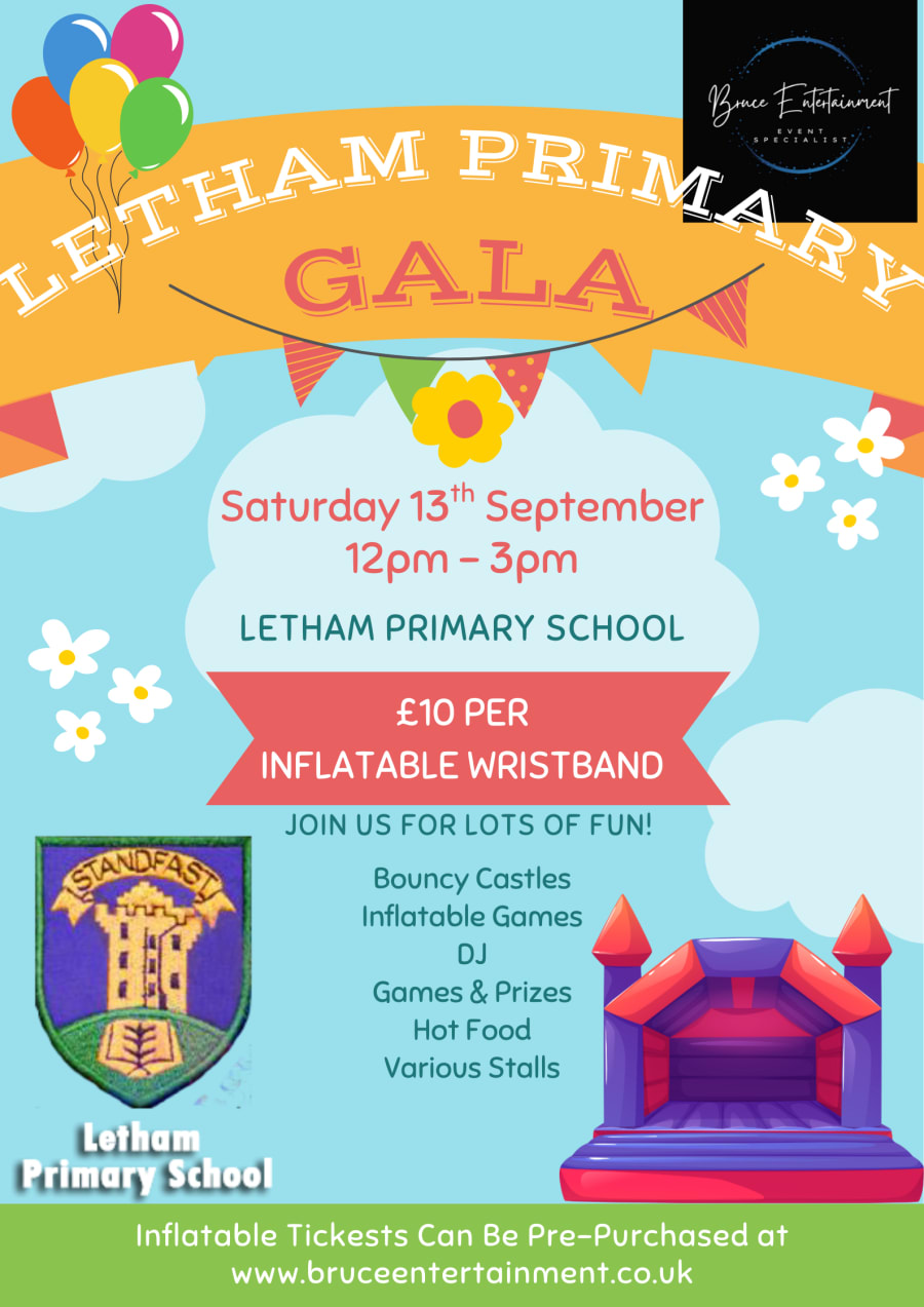 Don’t miss out on the Letham Primary Gala – your go-to event for bouncy castles, fun, fundraising, hot food, DJ, and kids entertainment. Mark your calendar and join us for a memorable celebration at Letham Primary!