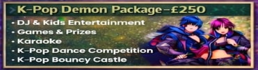 The K-Pop Demon Hunter is a high-energy two-hour party package built for kids who love music, dance and theatrical fun. This all-in-one experience pairs a professional DJ with a skilled kids entertainer. Expect karaoke, interactive games, prizes, and a spotlight dance-off: the K-Pop Demon Hunter Dance Competition. A themed K-Pop bouncy castle adds immersive play. Perfect for birthdays, school events and themed meetups.